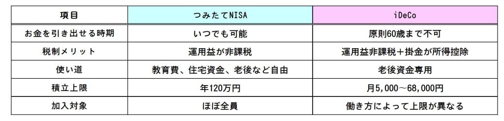 ここからが本題です。 つみたてNISAとiDeCoは どちらが良い・悪いではなく、役割が違う と考えるのがポイントです。