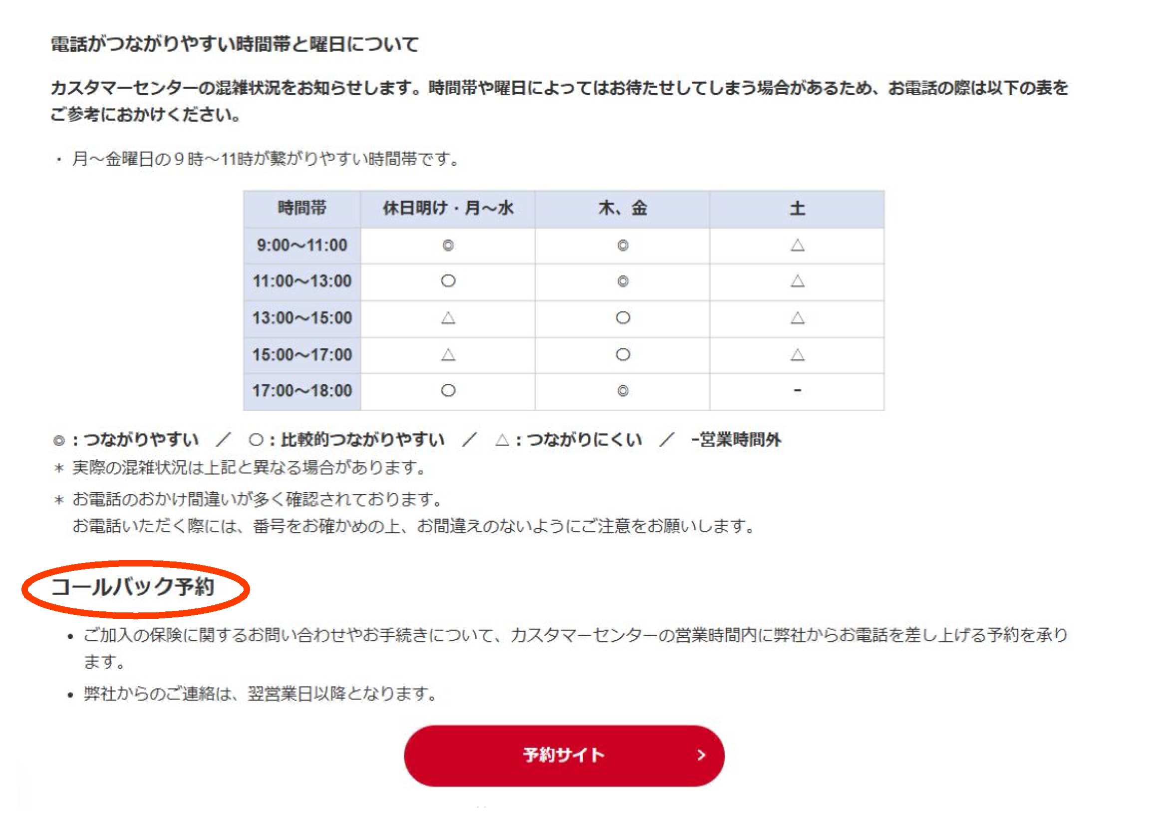 カスタマーセンターの営業時間内に保険会社からお電話を差し上げる予約を承る【コールバック予約】システムが新設されましたのでご案内です。